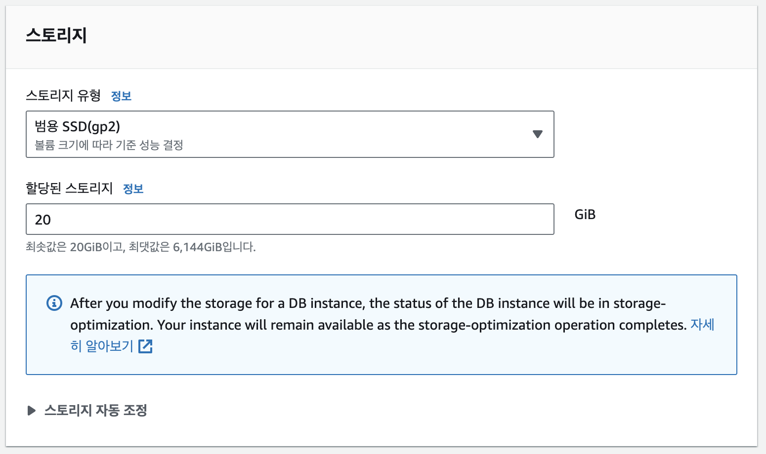 스토리지 구성 스토리지는 말그대로 저장공간의 사양을 어떻게 할 것인가인데요.